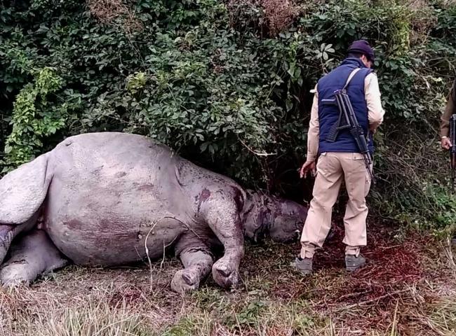 A Rhino has been killed by poachers in Kaziranga National Park and its horn has been cut off...