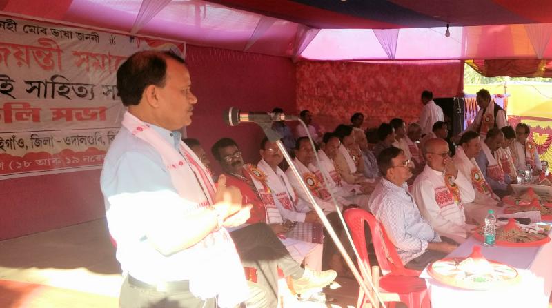 ”The passing of Assamese Language Bill in Assam Legislative Assembly while late Bishnu Ram Medhi was the Chief Minister of Assam,without consulting a few great tribal leaders of Assam who used to speak in Assamese language in Assam Assembly had been one of the causes for which Assamese language lost the faith of non Assamese tribal leaders during sixty’s”,so said Dr.Paramananda Rajbongshi, secretary of Asom Xahitya Xobha at the concluding session of the silver jubilee celebration of Kendukalai Sahitya Samaj,a branch of Asom Xahitya Xobha at Kalaigaon on November 19.Dr.Rajbongshi in his speech as the chief guest of the open session also appealed all the people of Assam to adopt Assamese language as the languafranka in North EastIndia.The open session was presided over by Abul Hussain,president of Kendukalai Sahitya Samaj,Kalaigaon.Jagadish Sarkar,EM,BTC;Gurujyoti Das,MLA,Mangaldai attended the concluding open session as the distinguished guests.A souvenir “Kendukalai” was aslo released on the occasion by Dr.Manju Devi Pegu, HOD, Assamese department, Cotton College,Guwahati.Several books were also released on the occasion written by Mahendra Saikia,Chandana Deka,Sashi Prabha Devi and Mahibul Hoque.The cultural evening was inaugurated by Bonjar Daimari,EM,BTC where several distinguished singers of Assam including Pulak Banerjee,Kanika Bhattacharjee,Sangita Borthakur,Rintimoni Deka,Malabika Bora, Pranjal Sarma,Prashanta Rajkhowa sang several songs to much delight of the people present.India famed classical dancer Bhanu Saharia Deka of Mangaldai and her troupe performed a few spectacular Xatria classical items on the occasion too.It needs mention that Bhanu Saharia Deka has been working hard on taking Xatria culture in the international level. Mukut Sarma and Dibyajyoti Barua, secretaries of the organising committee offered vote of thanks at the end.