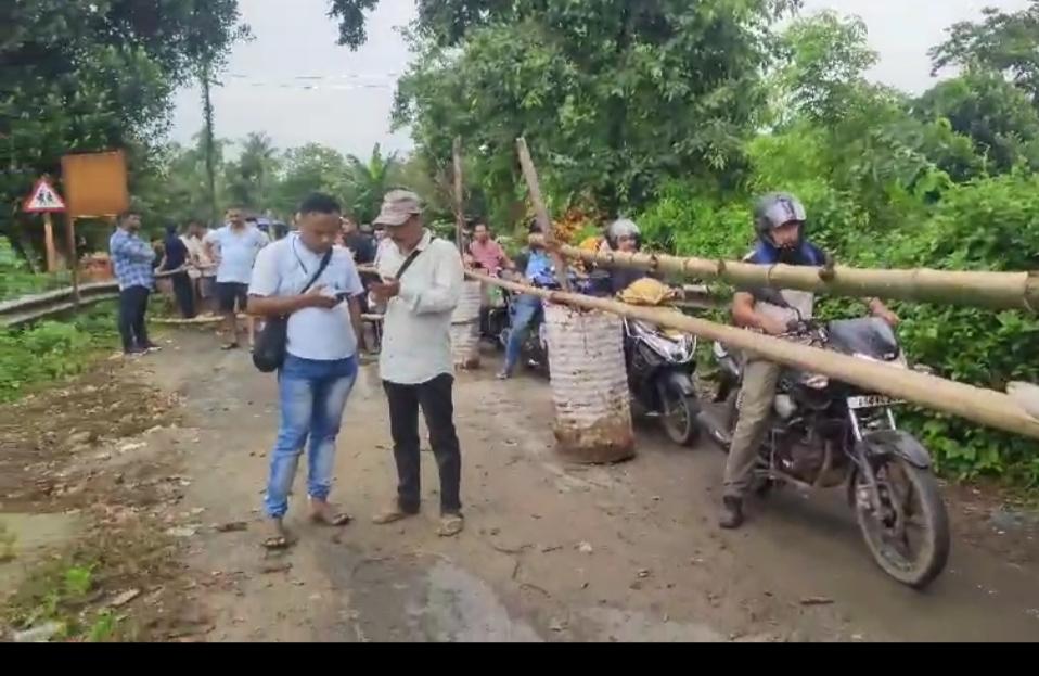 A public roadblock was staged today at Sunpura in Assam’s Sivasagar district as residents demanded immediate repair of the Nangalamara bridge over the Disang River.