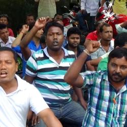 Youth Congress activists at Kalgachia burning Dr Himanta Biswa Sarma's effigy