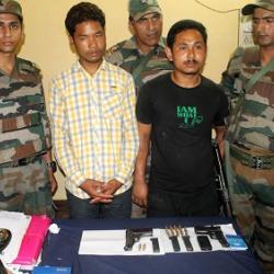 The 6 assault rifles seized from 23 Assam Rifles along with a wireless set by UNLFW during what is calls, 'Operation Changlangshu,' in Mon, Nagaland, Sunday, May 3, 2015.  Photo: UNLFW