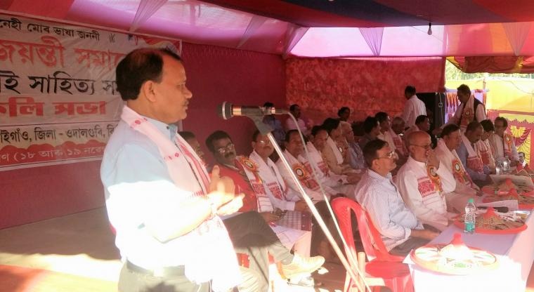 ”The passing of Assamese Language Bill in Assam Legislative Assembly while late Bishnu Ram Medhi was the Chief Minister of Assam,without consulting a few great tribal leaders of Assam who used to speak in Assamese language in Assam Assembly had been one of the causes for which Assamese language lost the faith of non Assamese tribal leaders during sixty’s”,so said Dr.Paramananda Rajbongshi, secretary of Asom Xahitya Xobha at the concluding session of the silver jubilee celebration of Kendukalai Sahitya Samaj,a branch of Asom Xahitya Xobha at Kalaigaon on November 19.Dr.Rajbongshi in his speech as the chief guest of the open session also appealed all the people of Assam to adopt Assamese language as the languafranka in North EastIndia.The open session was presided over by Abul Hussain,president of Kendukalai Sahitya Samaj,Kalaigaon.Jagadish Sarkar,EM,BTC;Gurujyoti Das,MLA,Mangaldai attended the concluding open session as the distinguished guests.A souvenir “Kendukalai” was aslo released on the occasion by Dr.Manju Devi Pegu, HOD, Assamese department, Cotton College,Guwahati.Several books were also released on the occasion written by Mahendra Saikia,Chandana Deka,Sashi Prabha Devi and Mahibul Hoque.The cultural evening was inaugurated by Bonjar Daimari,EM,BTC where several distinguished singers of Assam including Pulak Banerjee,Kanika Bhattacharjee,Sangita Borthakur,Rintimoni Deka,Malabika Bora, Pranjal Sarma,Prashanta Rajkhowa sang several songs to much delight of the people present.India famed classical dancer Bhanu Saharia Deka of Mangaldai and her troupe performed a few spectacular Xatria classical items on the occasion too.It needs mention that Bhanu Saharia Deka has been working hard on taking Xatria culture in the international level. Mukut Sarma and Dibyajyoti Barua, secretaries of the organising committee offered vote of thanks at the end.