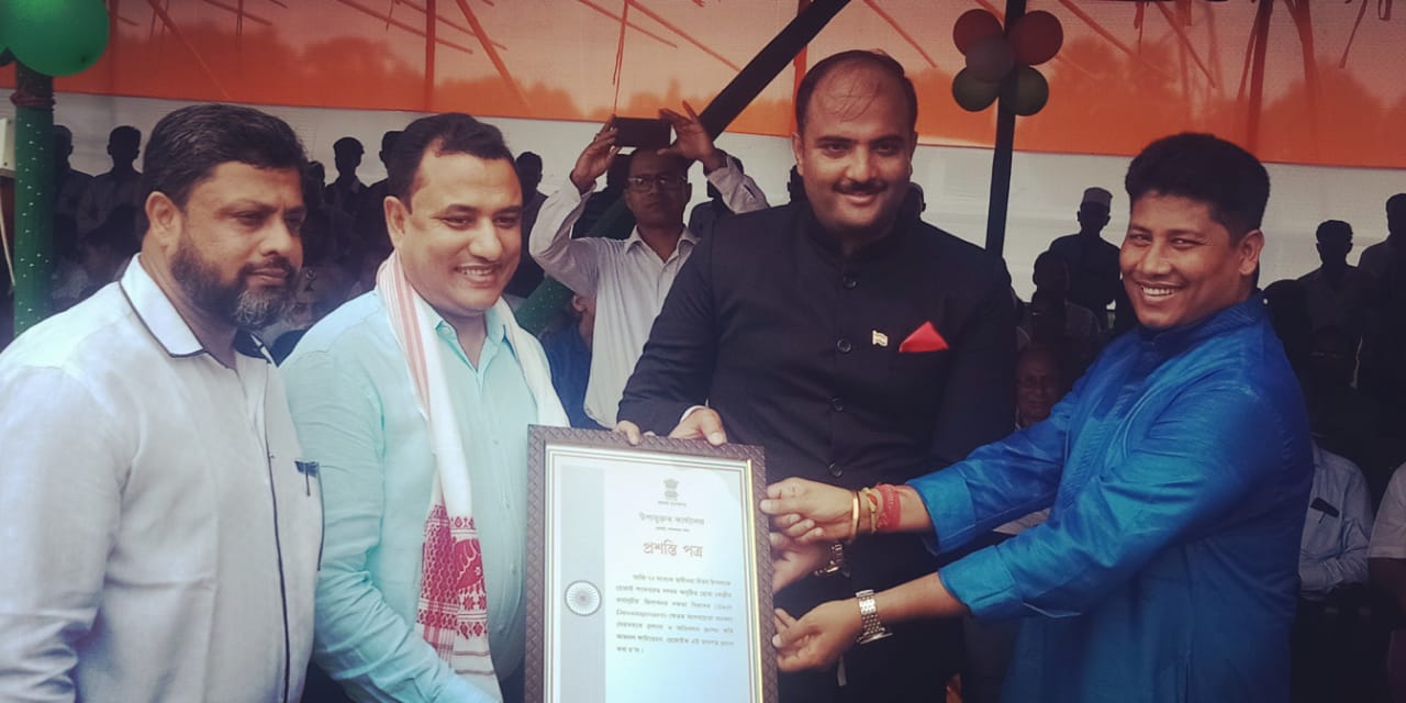 Pijush Hazarika, Hon'ble Minister of State, Health & Family Welfare, Govt. of Assam handed over the Special Recognition as the most Cleanest Office of the Hojai District to Executive Engineer Sanjai Kumar Mahanta, Jamuna CAD Division (Irrigation) for its outstanding contribution in the field of Sawach Bharat Mission in Hojai District.