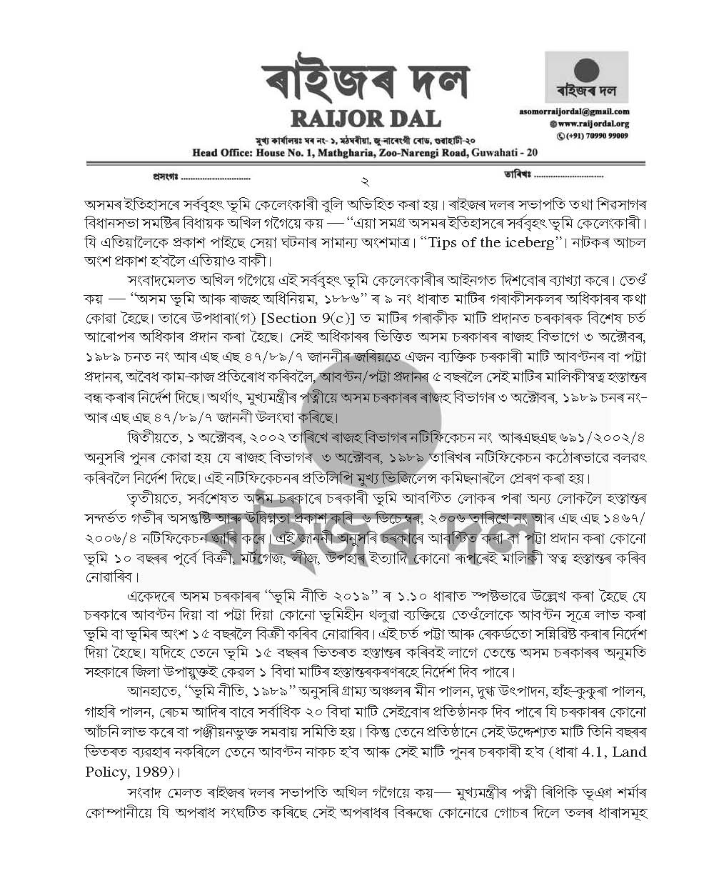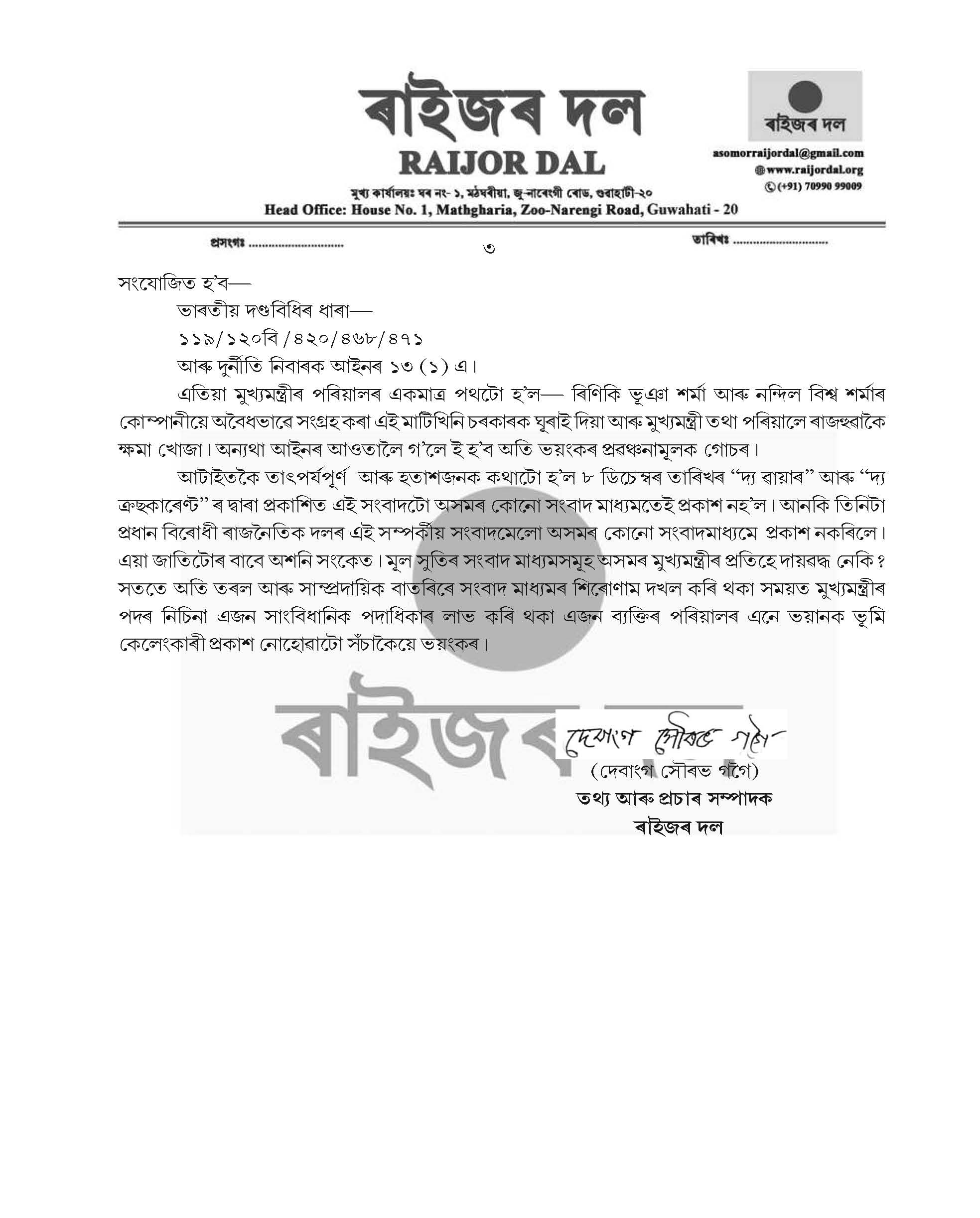 Guwahati/New Delhi: A New Delhi based high octane news portal broke a story on a nefarious land scam involving Chief Minister Himanta Biswa Sarma's family members that touched off a seismic wave of reaction in the social media from Wednesday.