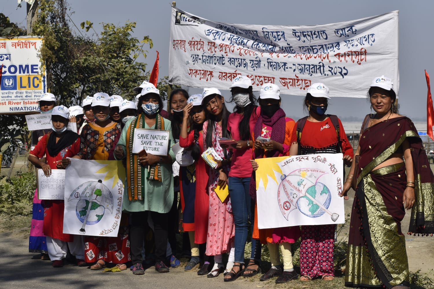 On the eve New Year, 1st January and the first day of 2021 North East Affected Area Development Society( NEADS) in support of Bread for the World and North East Dialogue Forum(NEDF) organised a campaign on combating climate change at Nimati Ghat which is the gateway of largest river island Majuli which is a heritage site.