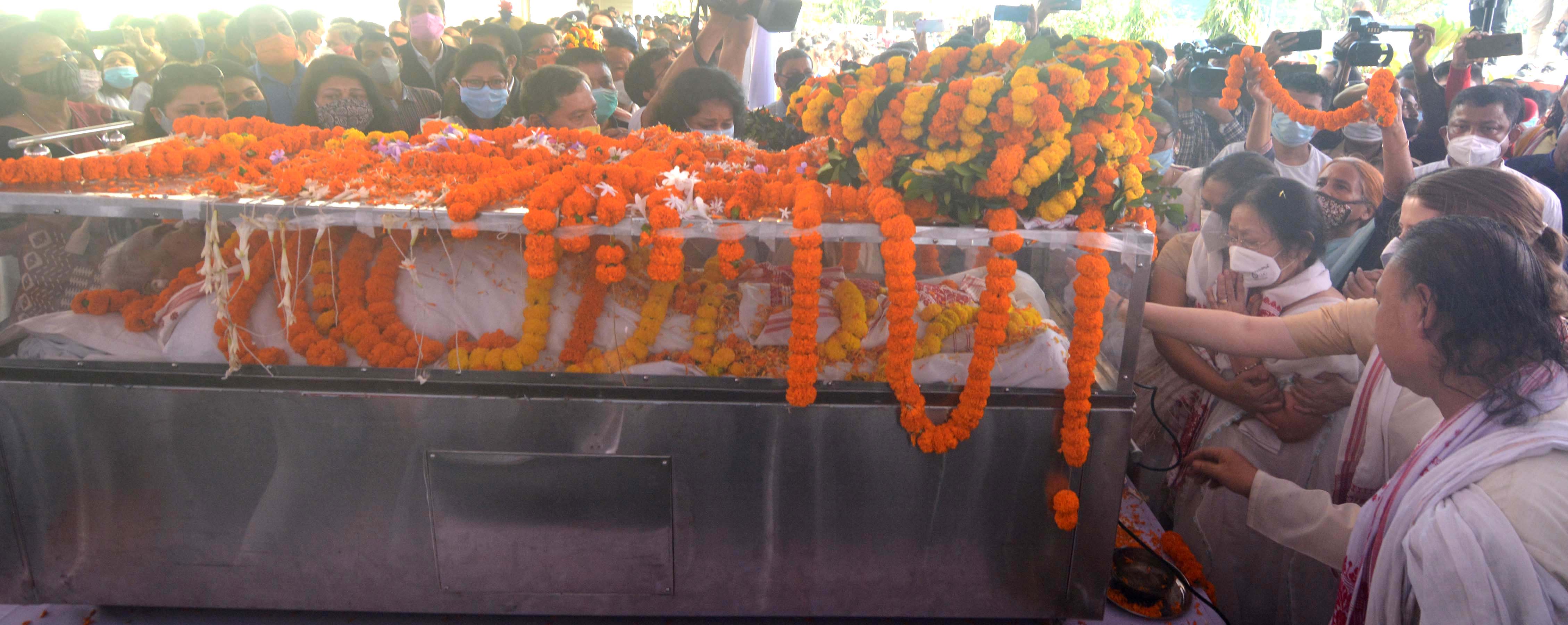 Guwahati: The Guwahati-Shillong from Bhangagarh to Dispur broke into a sea of humanity when the mortal remains of Tarun Gogoi was taken out from Guwahati Medical College Hospital where the former Chief Minister died of post COVID19 complications.