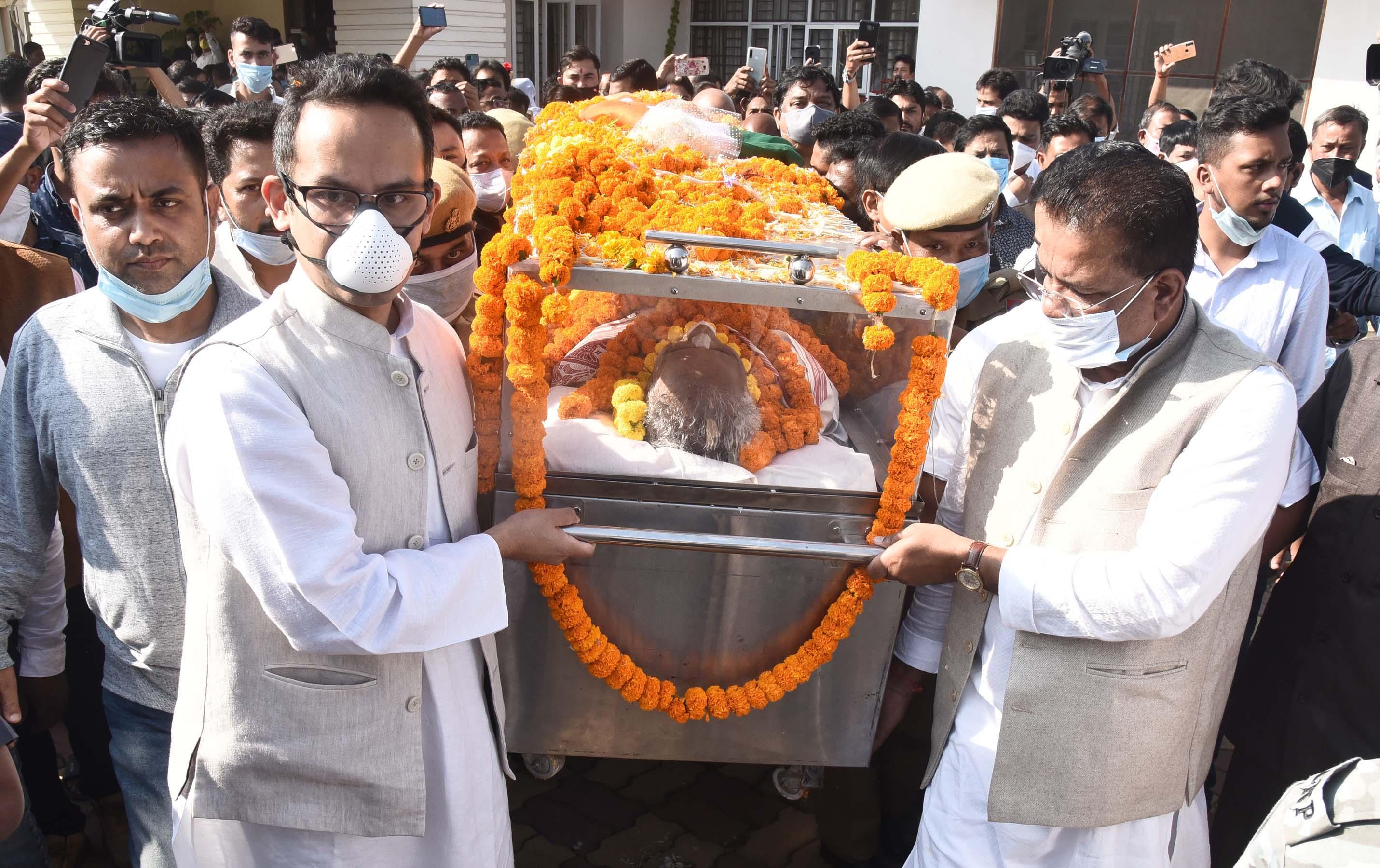Then it was taken to the state secretariat where the employees paid their last respect and then at the Rajiv Bhawan to pay last respect by the party men. It would be kept at the Shankardev Kalakhetra from the evening and the cremation will take place on