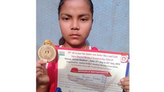 Meanwhile, after her selection for the State boxing team, Phulmoni Daimari was felicitated by the teachers and students of Udalguri Girls Higher Secondary School on Monday to encourage her so that she along with the other team members of the State can bring laurels to the district and the State delivering their best in the forthcoming national championship.Phulmoni Daimari’s coach Dhaneswar Basumatary, who runs the Dhaneswar Basumatary Boxing Training Centre, Udalguri, informed that she is being imparted all possible training for the forthcoming championship.