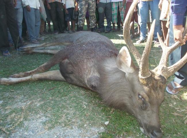 A male Sambar deer (Rusa Unicolar) aged 10 years have been killed by miscreants near Coramore today...