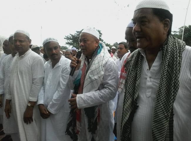 BTC Chief Hagrama Mohilary offer his Namaj at Hauriapet Idgah ground in Gossaigaon subdivision of...
