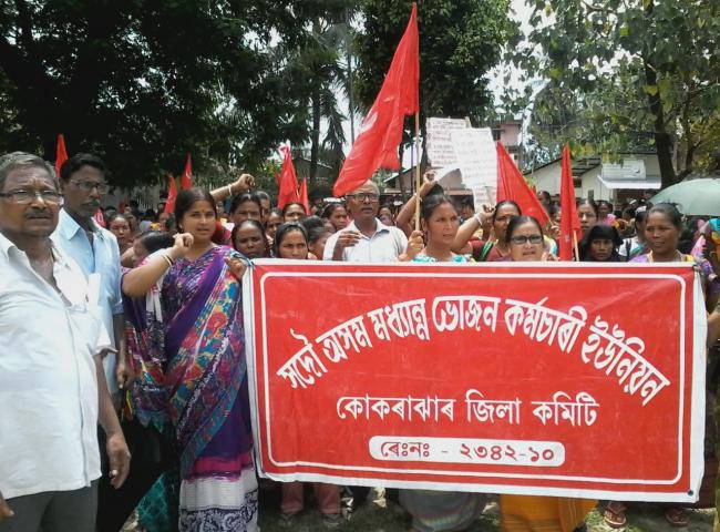 Hundreds of ICDS worker, helper, mid day meal workers and tea estate workers join hands with banner...