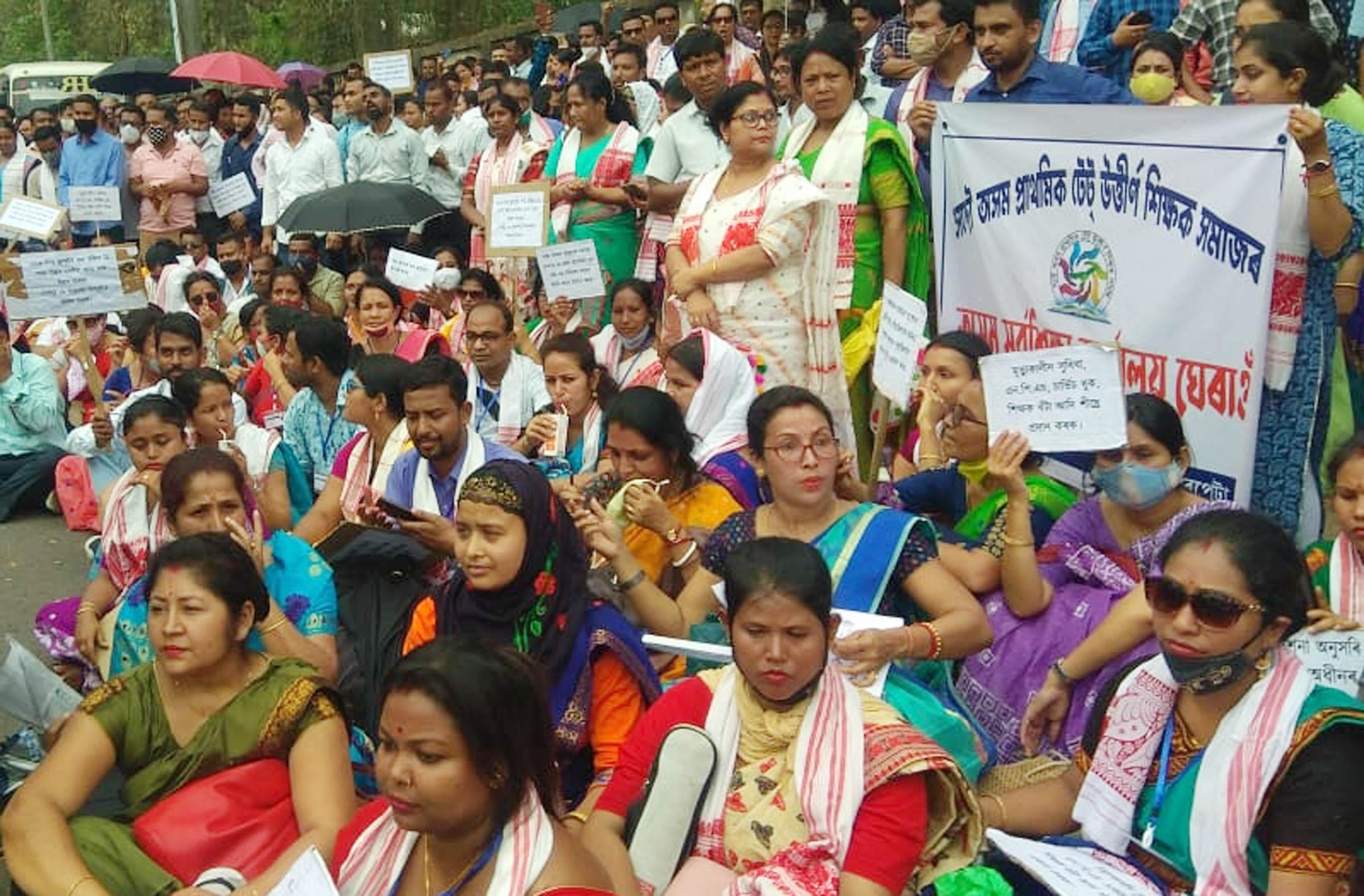 The Assam contractual teachers' association on Thursday staged a massive protest in support of...
