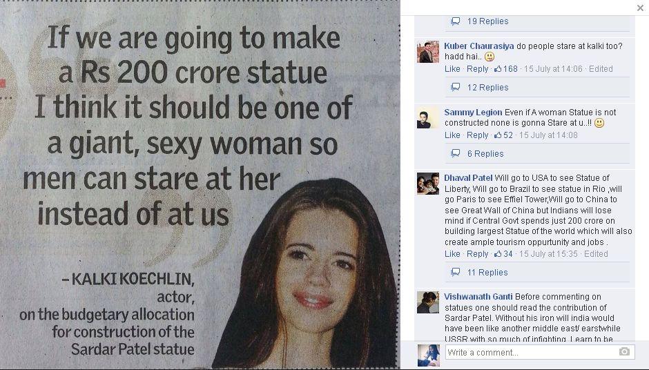 It’s a fact that most sexual harassment cases are committed by acquaintances. It starts right from childhood, on a daily basis, all the groping, pushing, touching. What’s a bit surprising, and disappointing, is that it continues even now, when we are in our twenties and still can’t expect better from our peers, from men who claim to be decent and women-respecting and men who have been brought up in similar backgrounds and are ‘educated’ enough to read this article and have enough ‘knowledge’ to maybe even respond to it in some way (most probably negative). What’s disappointing is that those men still find it funny to use the word ‘rape’ for random things (like what happened when Germany ‘raped’ Brazil in the FIFA semi finals) and confidently protest when pointed out that it might be unfair to do so. What’s disappointing is that the fact that some woman is a lesbian still makes a man smirk. What’s disappointing is that men react like this when Kalki spoke on a woman’s right to be respected (and to note that the top comment seen here is the one that had the most likes on the whole thread). What’s disappointing is that the first meet with many of these ‘educated, sophisticated’ men is always an analysis of body parts and nothing more.