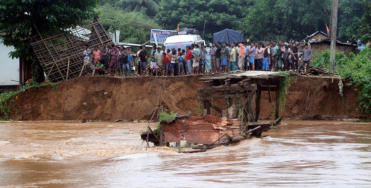 A number of bridges is believed to have been washed away on Sunday and Monday. In Guwahati also, the people in Anil Nagar, Lachit Nagar, Nabin Nagar, Chandmari have hardly any respite even after the authorities set up relief camps on Monday. Rainswaters start receding from early in the morning.