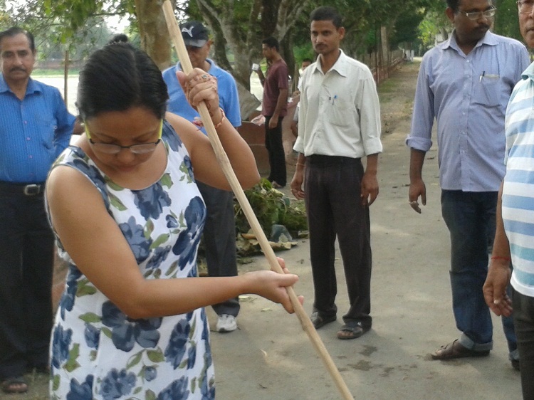 Nazira also joins the cleanliness campaign with MLA Debobrata Saikia sweeping a puja pandel with a bundle of broomstick on Tuesday.
