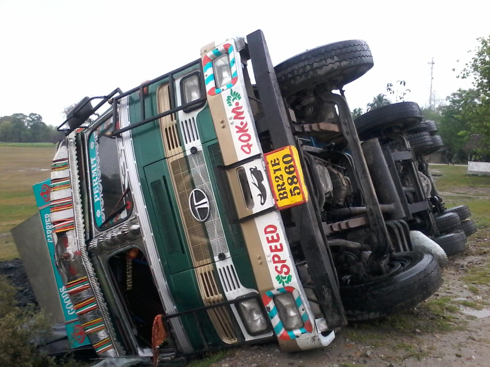 The driver was safe unhurt in the incident. Eye witnesses told Assam Times that the truck fell on the roadside after the driver lost control over the vehicle. Police officials visited the spot and took stock of the incident.
