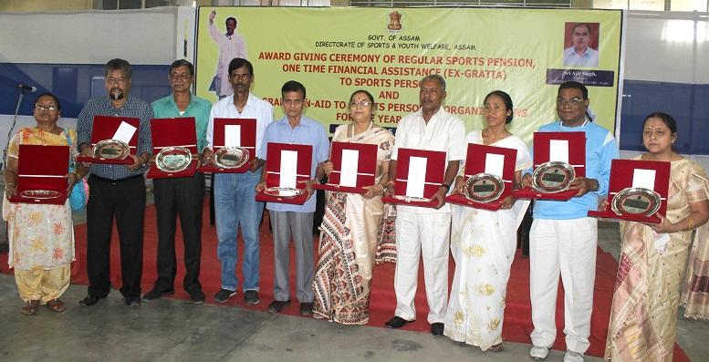 Sports Minister Ajit Singh presented awards and ex-gratia to a group of former sports persons recently. The event was organised by the Directorate of Sports & Youth Welfare at at Bhogeswari Phukanani Indoor Stadium, Rudra Singha Sports Complex, Guwahati on Thursday.