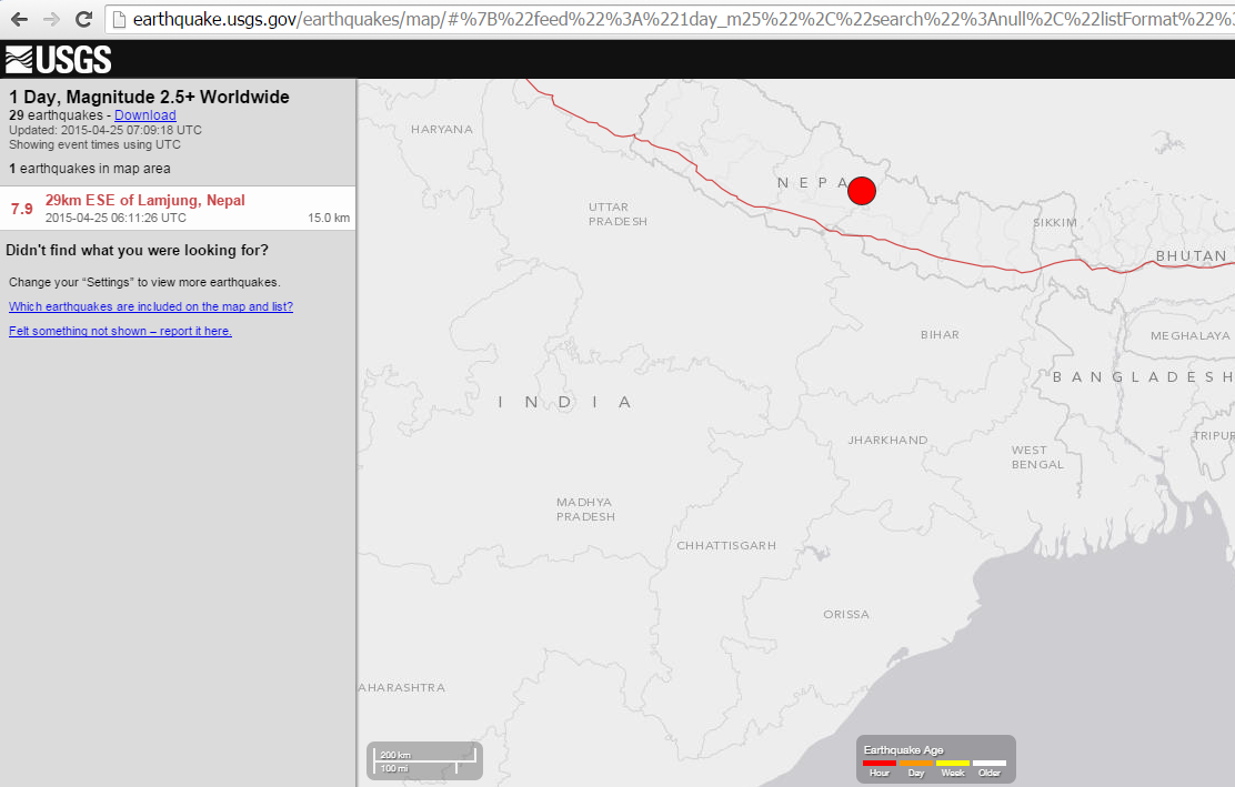 The epicentre of the earthquake occurred some 29 km ESE of Lamjung, Nepal according to According to United States Geological Survey (USGS).