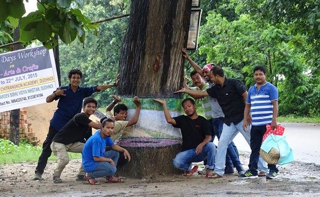 Chitrangkon Academy an Art School in Dudhnoi, Goalpara had conducted Summer Art and Craft Workshop in July 2014. 3D Art, a new form of art was introduced for the first time in Assam in this workshop by Mr. Ghanakanta Rabha an alumnus of Visva Bharati University, Santiniketan. 3D art was performed again in this years edition of the same workshop on 22nd July 2015. This years theme was "SAVE TREES TO SAVE THE EARTH". Co-artists included Himdipta Kakati, Dhiraj Rabha, Samudra Rabha, John Rabha. Deputy Commissioner of Goalpara district JVN Subramanyam, IAS, also attended the workshop and appreciated the noble works of the artists and encouraged the young participants. The 3D art was a part of a thee days workshop organised by Chitrangkon Academy, a leading art school in Dudhnoi, Goalapara during 20-22 July 2015.