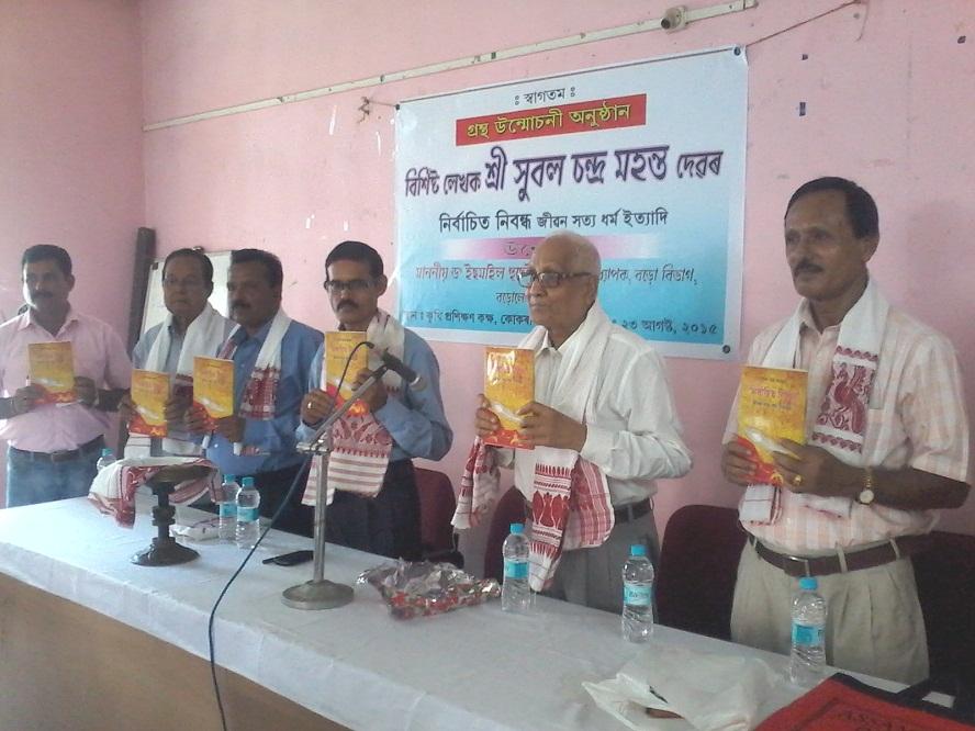 Prof Ismail Hussain of Bodoland University released the Nirbashito Nibandha Jiban Satya Dharmaauthored by by state literary awardee and noted writer Subal Chandra Mahanta at a function at the Agriculture Training Hall in Kokrajhar on Sunday.