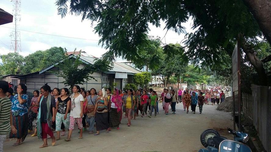 Women in restive Churachandpur taking out procession on Tuesday a day after their male counterparts turned violent after assembly passed three crucial bills to ensure safety of "indigenous people".