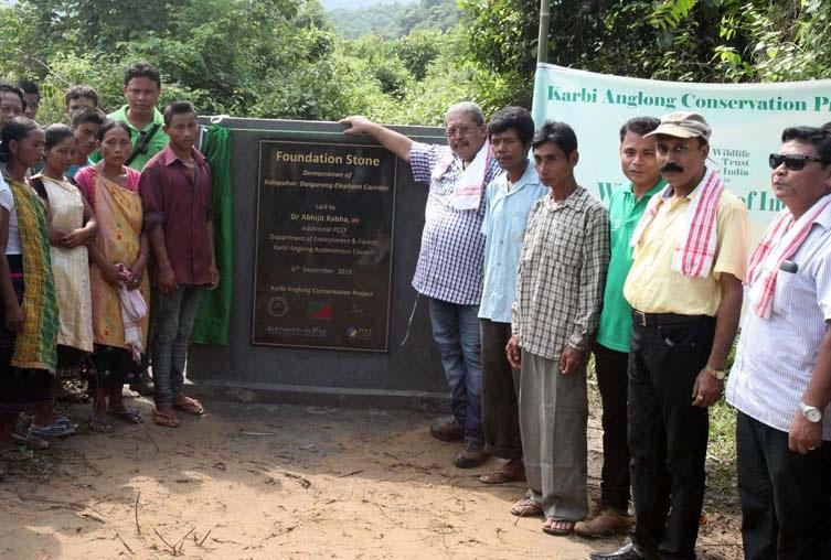 Physical demarcation of the Kalapahar-Daigurung elephant corridor in Karbi Anglong district got a formal boost after a foundation stone was erected at a ceremony organised by Wildlife Trust of India (WTI), under the guidance of Dr Abhijit Rabha, IFS, Additional PCCF, Karbi Anglong Forest Department. The foundation laying ceremony was attended by senior officials of Wildlife Trust of India, Assam Forest Department and heads of villages that fall within the corridor on Sunday,6th September 2015.