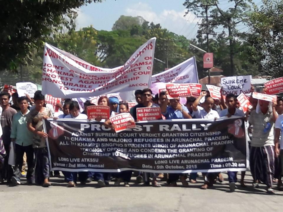Reacting on the Supreme Court verdict to grant citizenship to Chakma-Hajong refugees the students union of effected district Namsai, comprising of All Tai Khamti Singpho Students Union (ATKSSU, All Namsai District Students Union (ANDSU), All Namsai Area Youth Association (ANAYA) and other organizations staged mass protest rally at Namsai on Monday.