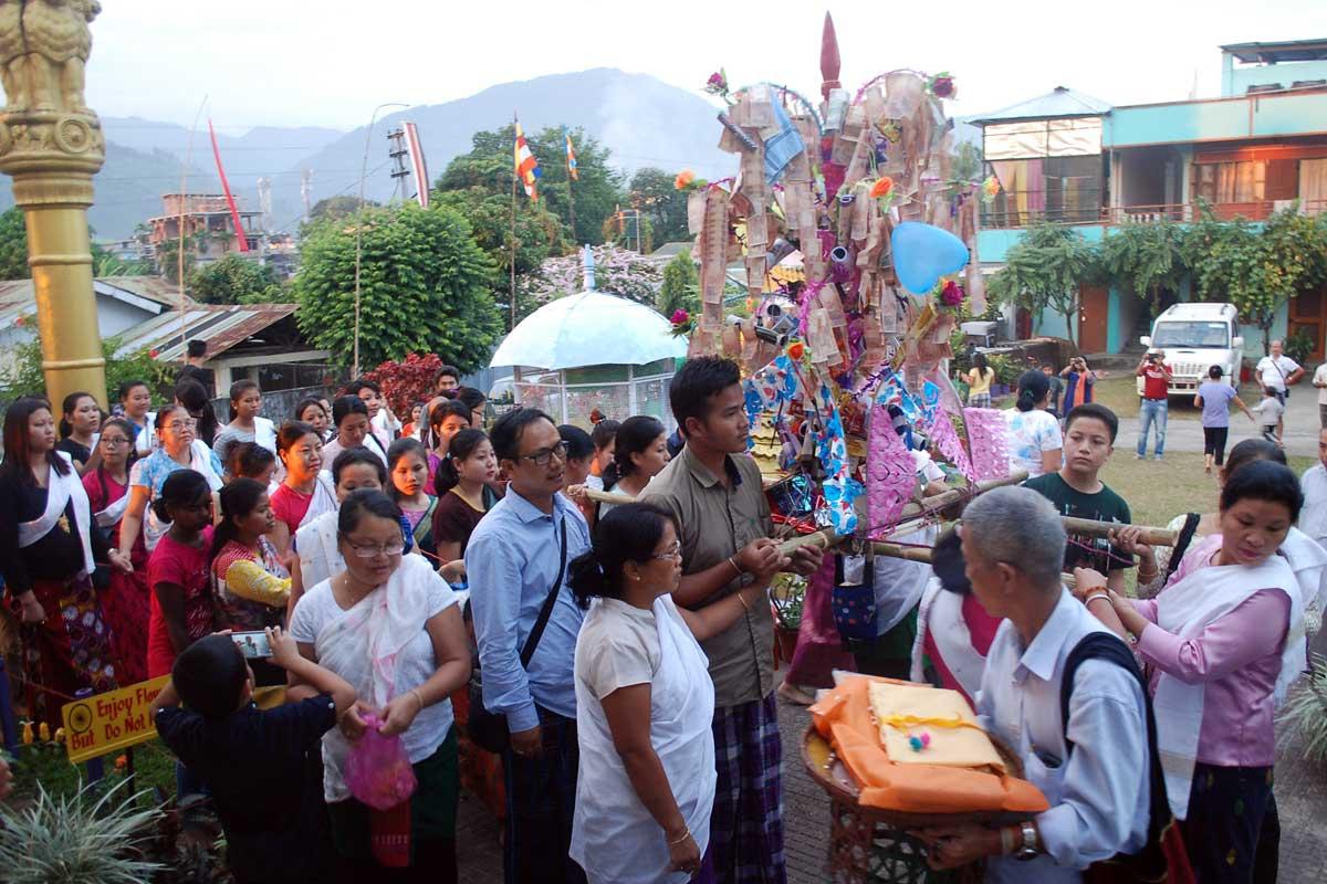 Poi Potwa was celebrated today at Theravada Buddhist Vihara Itanagar to mark the end of Satang Potwa. This festival is generally celebrated to pay homage and reverence to Bhikkhus by the devotees.