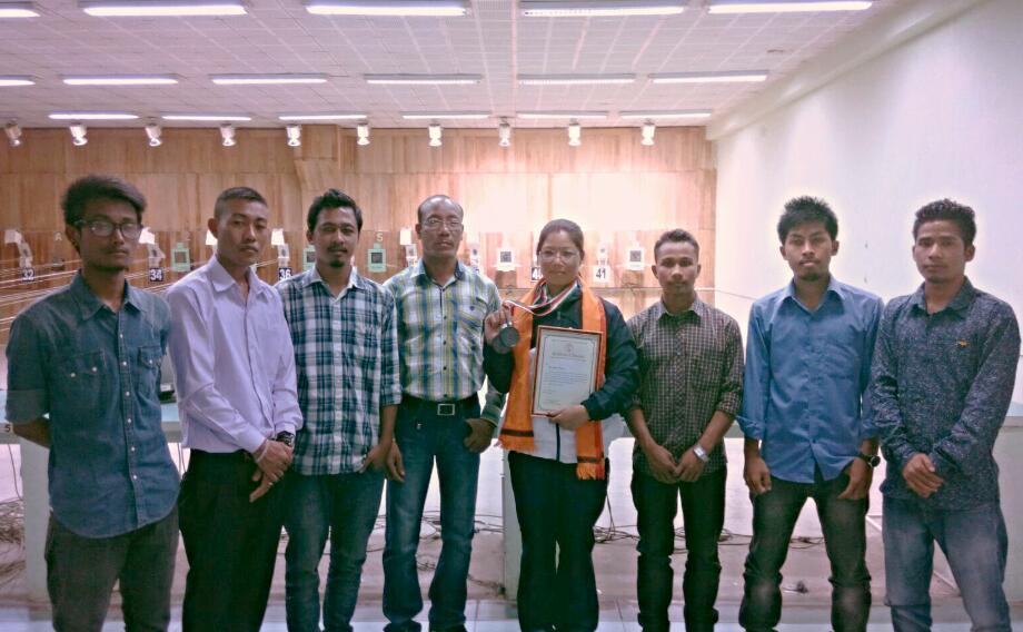16th National ranking & number one State ranking of Shooting (Sports) Championship Reshmi Thaosen from Haflong has been felicitated by the Dimasa Students' Community, Guwahati (DSCG) lead by President Mandeep Phonglo accompanied by its General Secretary Sarporaj Hojai and numerous members on Thursday at Guwahati Shooting Range, Kahilipara.