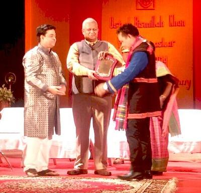 Tripura Governor, Tathagata Roy in presence of Shekhar Sen, Chairman of Sangeet Natak Akademy (GoI), presented the “Ustad Bismillah Khan Yuva Puraskar, 2013-14,” to Padung at a glittering function in recognition of his remarkable contributions in the field of Folk Music of Arunachal Pradesh. The award comprizes Memento, Citation and twenty-five thousand cash.