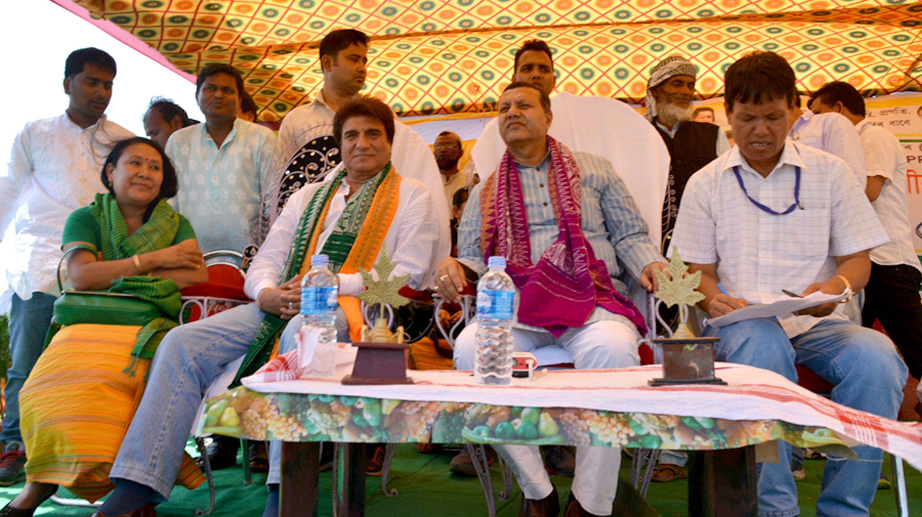 Actor turn politician and Congress MP Raj Babbar campaigned for UPP candidate Urkhao Gwra Brahma for Kokrajhar west LAC at Chautara ground on Friday in Kokrajhar district. Babbar, was accompanied by Asssam Minister and senior CongressleaderSiddique Ahmed landed in a chartered Helicopter.