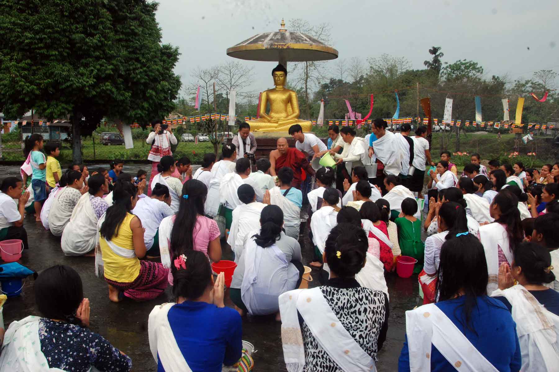 At Itanagar, The last three days of the festival was a sight to be seen in the Theravada Buddhist Temple where revellers from other communities also joined in the celebration to douse each other with scented water and to pay their homage to Buddha. The Theravada Buddhist Society Itanagar ensured 6all arrangement for smooth conduct of the water festival here in capital.