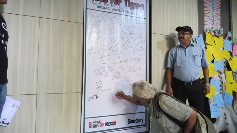 Besides the host school, students from International School, Maria's Public School, Maharishi Vidya Mandir Public School, Rajgarh and the Kaziranga English School participated in the festivities. In consonance with the Earth Day 2016 theme 'Trees for the Earth', several saplings were planted by the students, teachers and naturalists around the sprawling campus of Royal Global School. The students also signed a scroll for wildlife conservation and shared their thoughts about Mother earth on a Wishing Tree installation at the venue. Several naturalists and wildlife photographers including Sanctuary Wildlife Service Award winner and Tiger Defender Binod Dulu Borah, Ranjan Barthakur, Diganta Goswami, Jyoti Bikash, Rubul Deka and Seemanta Jyoti Baishya interacted with the students. Green Guard Nature Organization, who facilitated the organization of the Tiger Fest, has been implementing the Kids For Tigers programme in Assam since the past several years.
