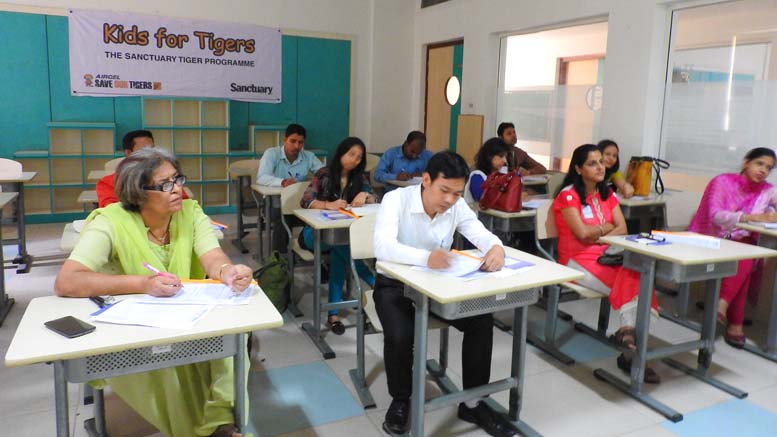 The Guwahati Tiger Fest was organized at the Royal Global School to coincide with Earth Day 2016. The Tiger Fest was the culmination of the Sanctuary Asia Aircel Kids For Tigers programme for the year 2015-16 at Guwahati. Hundreds of students from various city schools were enraptured by an audio-visual presentation by Sanctuary Asia Founder Editor Bittu Sahgal. Dance, drama, songs, face painting, wall painting, fancy dress, art installation, wildlife photo exhibition, poster making, tree plantation, were among the activities organized in a festive ambience. A Teachers Environmental Leadership Workshop was also organized at the sidelines with presentations by NEHU Research Scholar Debajit Kalita and Green Guard Nature Organization Secretary General Rituraj Phukan. Mr. Pradipta Baruah, Assistant Conservator of Forests presently posted at the Assam State Zoo cum Botanical Garden, also interacted with the teachers about the current threats to wildlife conservation and the initiatives by the forest department.