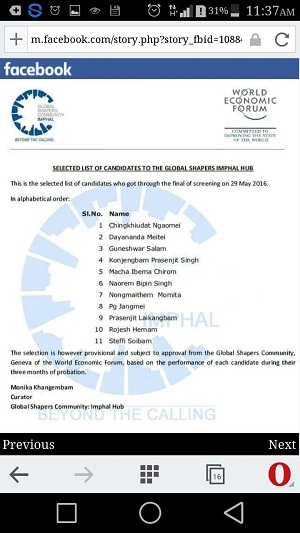 “The selection is however provisional and subject to approval from the Global Shapers Community, Geneva of the World Economic Forum, based on the performance of each candidate during their three months of probation,” says Curator GSC Imphal-Hub Ms Monika Khangembam announcing the result of the final screening on 29 May 2016.