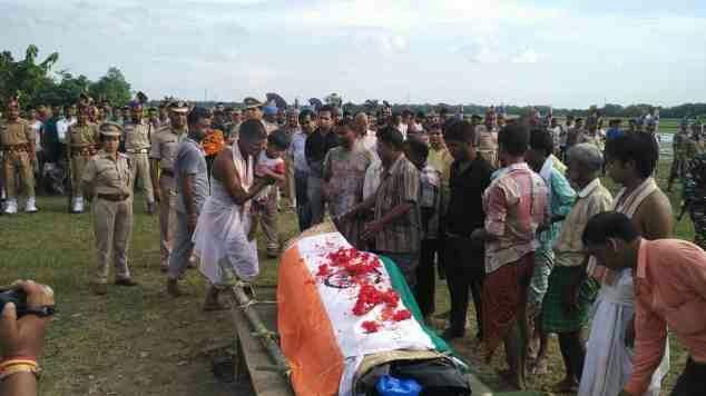 The body of CRPF jawan Balen Harizon (28) who was killed in Maoist's attack in Jarkhand reached his birthplace in Bajali on Sunday. The last rites were performed in presence of thousands of people.