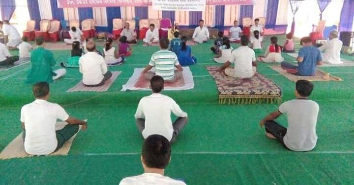 2nd International Yoga Day camp was held on the morning of Tuesday in joint collaboration of Tangla regional Patanjali Yoga committee and Bharat Swabhiman at Tangla HS school field. The Yoga camp was participated by nearly hundred people catering to almost all age group. Females also actively participated in the camp.