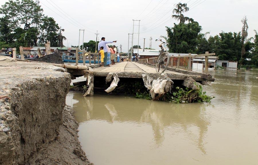 In many places a number of embankments have been washed away leaving thousands of people marooned totally disrupting surface communication in Sivasagar, Kokrajhar and Bongaon.