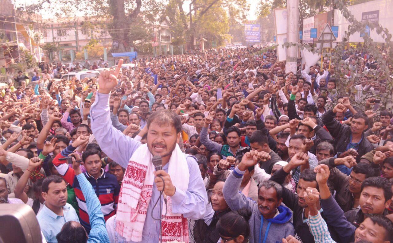 He was sent to jail initially in the Kaiziranga shoot out case where two villagers were killed they took out a huge protest led by Gogoi opposing the eviction drive.