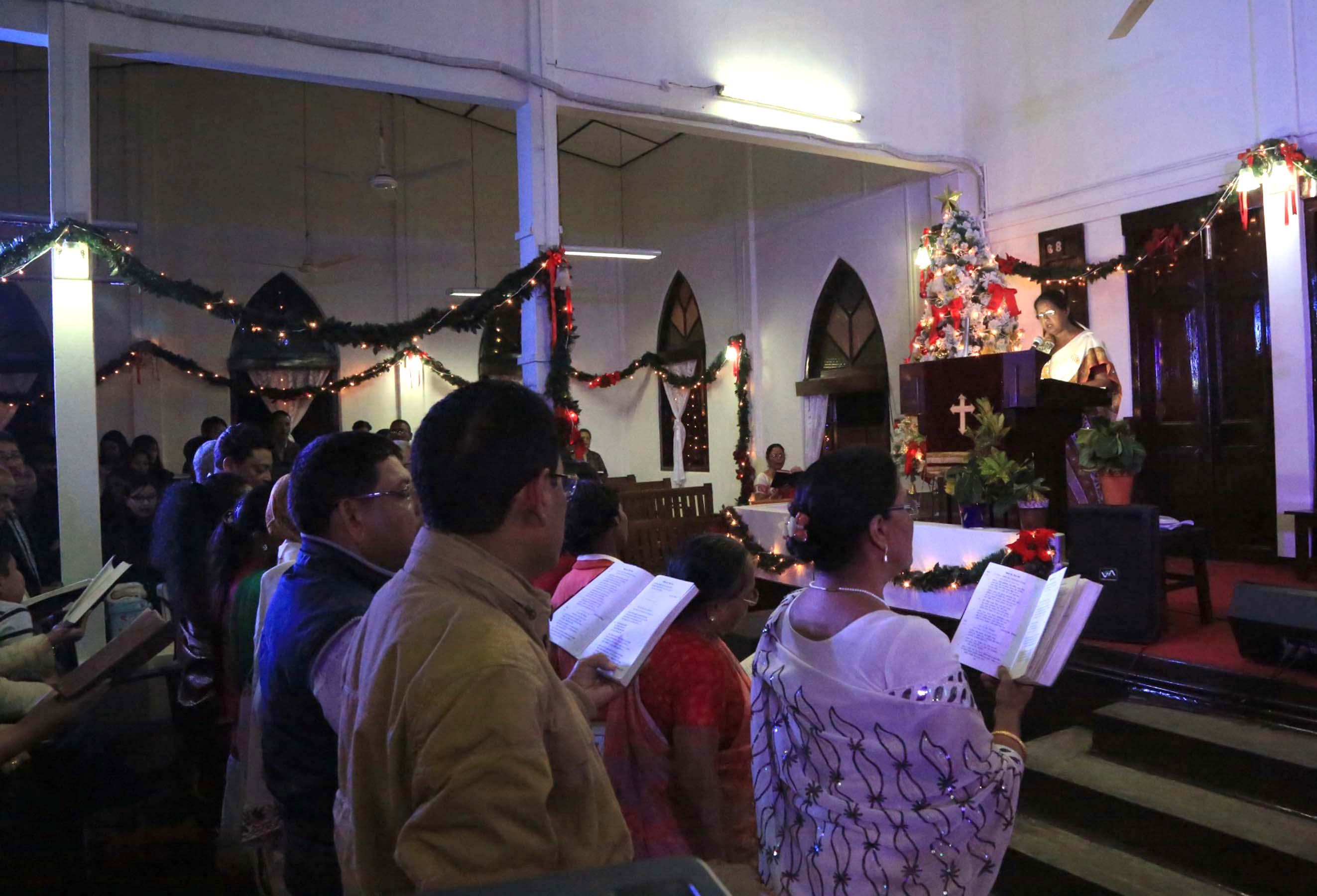 People in large number in the north eastern city of Guwahati rushed to the Panbajar based Baptist church in the morning after the end of the midnight carol to mark the birth of the Jesus.