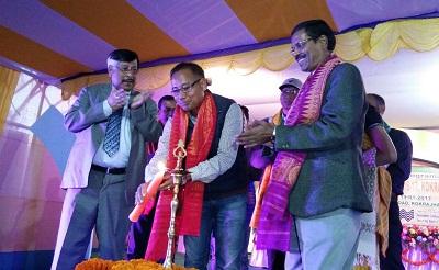 Binode Narzary, Chairman of Bodoland Regional Apex Weavers & Artisan Cooperatives Federation Limited(BRAWFED) lighted the lamp to inaugurate the expo in the presence of official and weavers from different districts of BTAD.The national handloom expo was organised by Bodoland Regional Apex Weavers & Artisan Cooperatives Federation Limited(BRAWFED). Nearly 100 stalls from different states of the country and districts of Assam,which included Assam,Northeastern states, Haryana,Rajasthan,Jammu & Kashmir,Punjab,Bihar,West Bengal,Chhatisgarh,Uttar Pradesh,Delhi etc are participating in the expo with their own state handloom products. NN Rana Patgiri, managing director of BRAWFED told that a customer assistance centre has also been setting up in the ground office market survey and analysis of demands,needs,preference of buyers of northeastern states area through the national handloom expo. Patgiri expresses his hopeful that at-least two crores of marketing would be held in the expo.