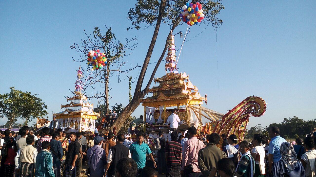 Thethree-day grand chariot festival locally known as Poi-Leng got started today at Namsai Poi-Leng Ground at the bank of Dihing river with great enthusiasm and participation of large number of people from all walks of life. The Poi-Leng celebration is held in honour of Late Venerable NyanapriyoBhikkhuMahathero of Port-Blair, Andaman who attained Nibbana (Nirvana) on January 8, 2016. The festival started with hoisting of World Buddhist flag, offering of breakfast to BhikkhuSanghaand chanting of mangalacharan. People in great number thronged the ground to witness the installation of mortal remaining of Late Venerable NyanapriyoBhikkhuMahathero to decorated chariot from Nibbana (Nirvana)...