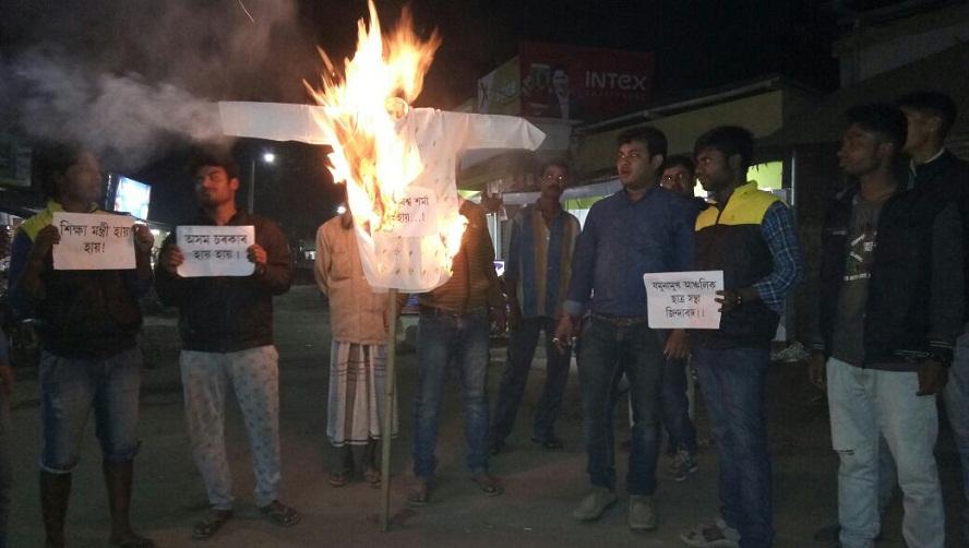 AASU leaders and activists in many places burnt Sarma’s effigy alleging his inability to smoothly conduct the examination at 855 centres.