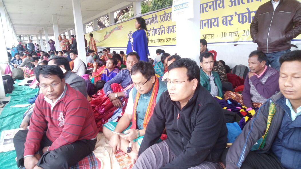 Thousands of people from many corners from different districts of the state are taking part in the strike with banner,placards,apart from Promod Boro, president, ABSU, Dhiren Boro, chairman, NDFB (P) and Rakesh Boro, chief convenor, PJACBM including dignitaries of the organizations and 1111 members, where 17 women are also in the hunger strike.