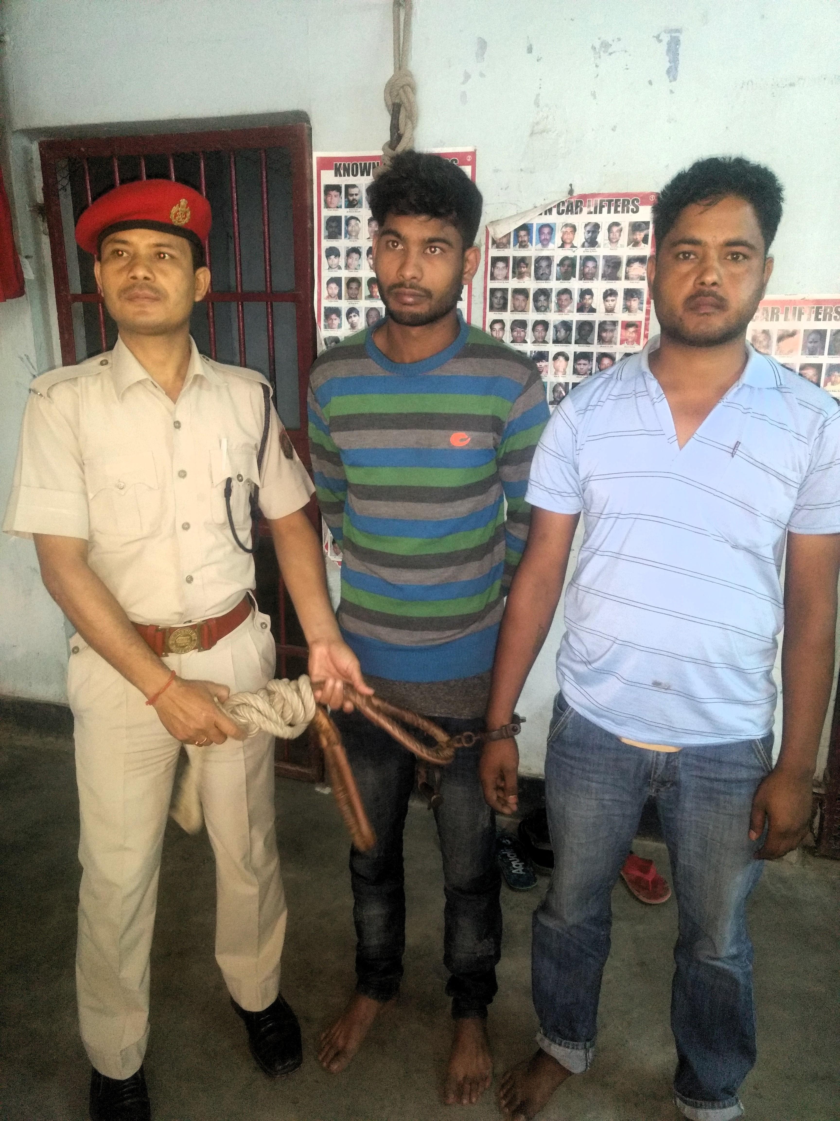 In a very drama like action Udalguri police successfully apprehended two abductors and rescued two persons who had been abducted yesterday within twenty four hours.According to information,one Arab Ali (30) was abducted by three miscreants on March 18 at 9 am from Mahaliajhar village under Kalaigaon police station.The kidnapped person was first driven to Jalukbari (Guwahati) area in a four wheeler vehicle.At eleven am on the same day abductors made a phone call to the elder brother of Arab Ali demanding an amount of rupees five lacs to be paid at village Borhi near Hajo.