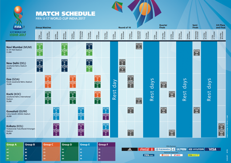 Following a week-long inspection tour of the six venues chosen for the FIFA U-17 World Cup India 2017, and with less than 200 days to go until the footballing talents of the future compete on the pitch, FIFA and the Local Organising Committee (LOC) have released the official match schedule and unveiled the tournament slogan.