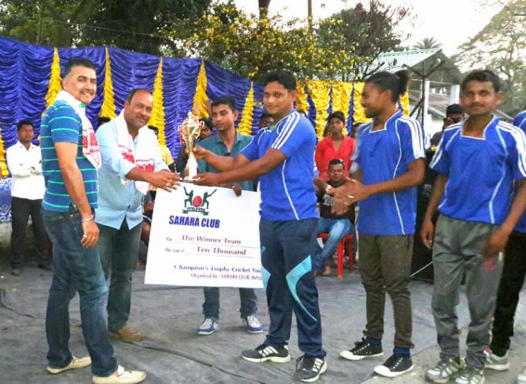 Hosts Sahara Club Hattigore annexed the title in the first Champions trophy cricket tournament on Wednesdya, defeating Paschimpatala club by six wickets in the final at Khoirabari playground in the premise of Hattigore Tea Estate.