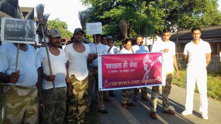 Swachata Hi Sewa is going on in Namrup by CISF Unit attached with BVFCL Namrup. A mega Sanitation cum awareness drive is getting good response from September 15, which will continue till October 2. It will include cleanliness drive in an around Namrup. On the other hand at the concluding day of occasion a competition on drawing, painting and essay will be held among the Wards of the CISF jawans.
