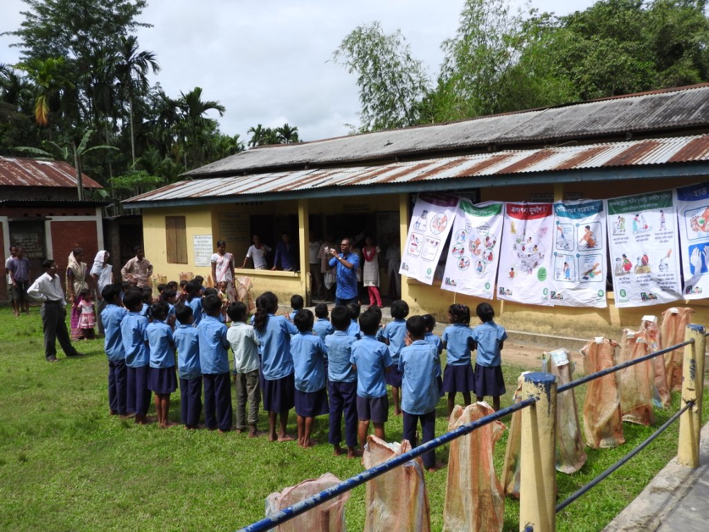 The Majuli island district was also heavily devastated due to both the flood situation in June as well as August. To provide sort of emergency assistance, NEADS as rapid relief distributed food and nutrition packets (including baby food), hygiene kit to 800 nos. of families of Lower Majuli area. At present public health promotional activities like drinking water chlorination, post flood hygiene campaign, women and children health awareness in the villages are being undertaken to reduce the morbidity of the affected people. The programme is being supported by German based Terre Des Homes (TDH).