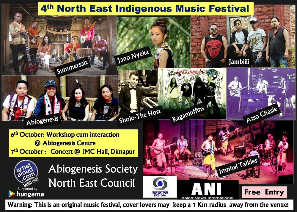 Organized by Abiogenesis Society with sponsorship from North East Council, Ministry of DoNER, Shillong; Artist Aloud as Digital Promotion Partner, Asian News International (ANI) for international news coverage and Doordarshan Kohima Kendra for live telecast, the festival aims to showcase music made by indigenous social groups of the region.